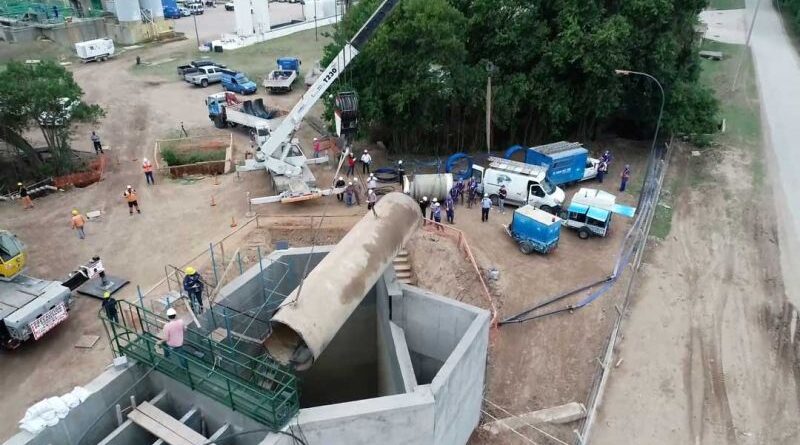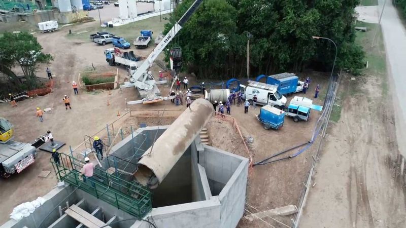 Según la información oficial, “los trabajos consistieron en la puesta en funcionamiento de la cámara de nexo de 550 m³ de H° y 65 Tn de acero que permite la interconexión de la cañería a la planta de tratamiento. Para ello se colocó una compuerta sobre la cañería existente de 1600 mm de diámetro y se cortó la cañería provisoria instalada en un operativo anterior, realizado en febrero de este año”.