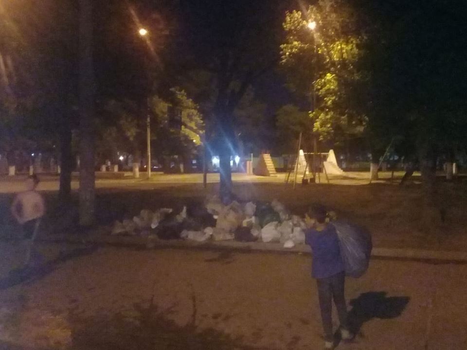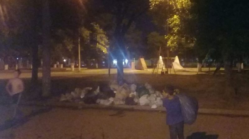Como forma de protesta por el deficiente servicio de recoleccióon de basura, vecinos de barrio Comercial llevaron la basura hogareña a la plaza principal del barrio.