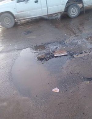 Según las imágenes, brota agua desde abajo del asfalto y ha carcomido todo el pavimento.