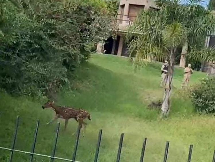 Luego de un llamado al 911, efectivos de la División Patrulla Ambiental en colaboración con personal del ministerio de Ambiente, se constituyeron en un domicilio ubicado en calle Ranqueles al 110 de Bº Costa Azul, donde constataron la presencia de un ciervo.