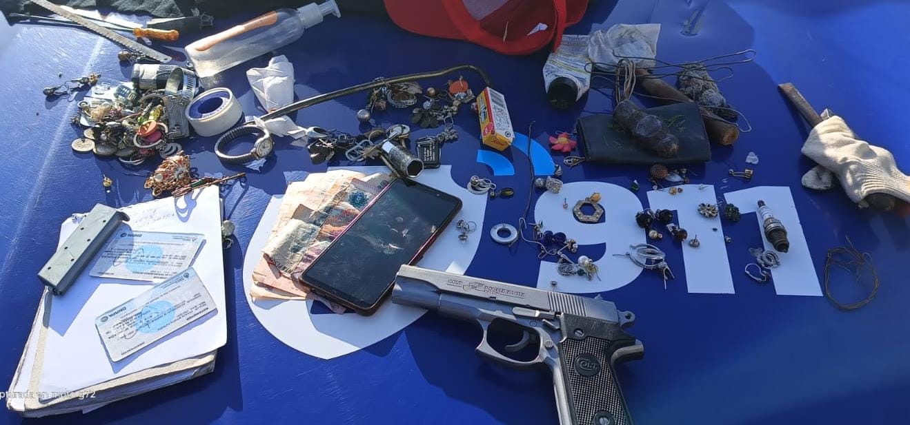 Asimismo, se incautó un aire comprimido tipo pistola 9 mm, un teléfono celular, dinero, alhajas y demás elementos que fueron reconocidos como propiedad del damnificado.