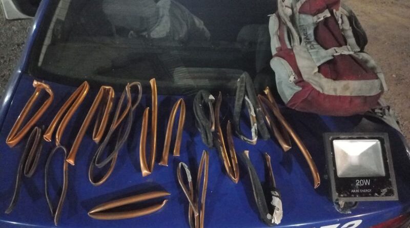 Inmediatamente, se procedió a la aprehensión de este hombre quien fue trasladado a sede policial con el secuestro de varios caños de cobre y un reflector.