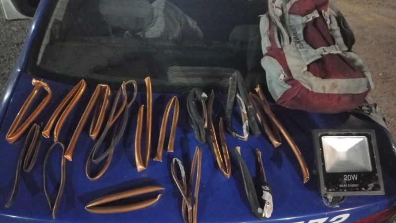 Inmediatamente, se procedió a la aprehensión de este hombre quien fue trasladado a sede policial con el secuestro de varios caños de cobre y un reflector.