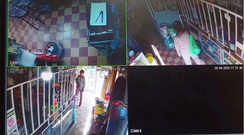 Según muestra el video enviado a este medio, una mujer de remera rayada y con una bolsa de color verde al hombro entra al local con supuestos fines de compra.