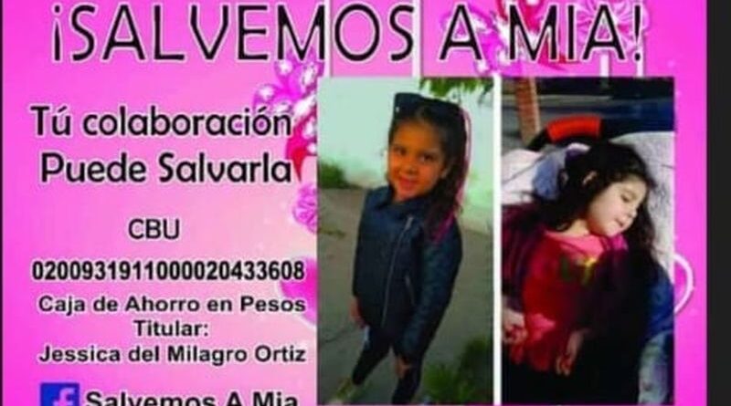 Mia Barrionuevo es una nena de la zona sur que necesita de la ayuda de todos para seguir con vida.