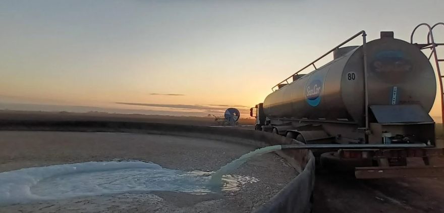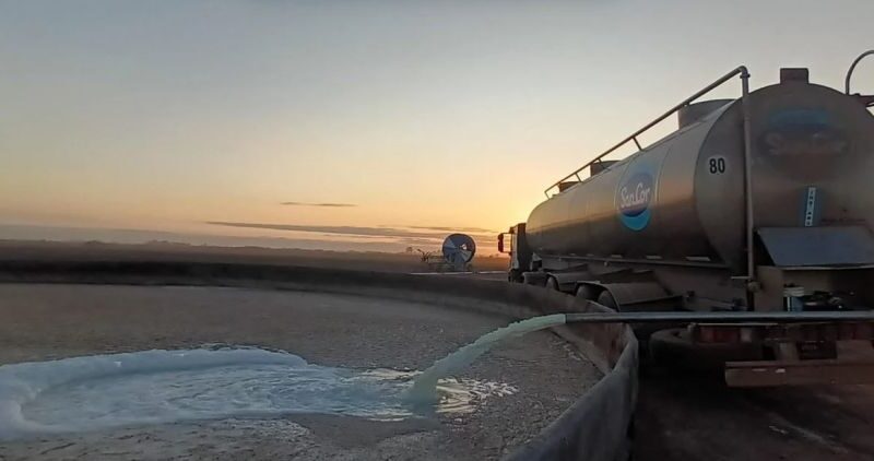 A las 6hs de este viernes 20 de octubre, la periodista rafaelina Elida Thiery estuvo presente y relató el momento en el que una cisterna de la láctea derrama en un estanque la materia prima. “Así se tiran 100.000 litros de leche que no se pueden procesar; está el sistema de recibo de la empresa, los silos de leche, y se empieza el descarte”, dijo a cámara, mientras detrás suyo un grueso chorro blanco salía del camión para caer en una planta de tratamiento de residuos.