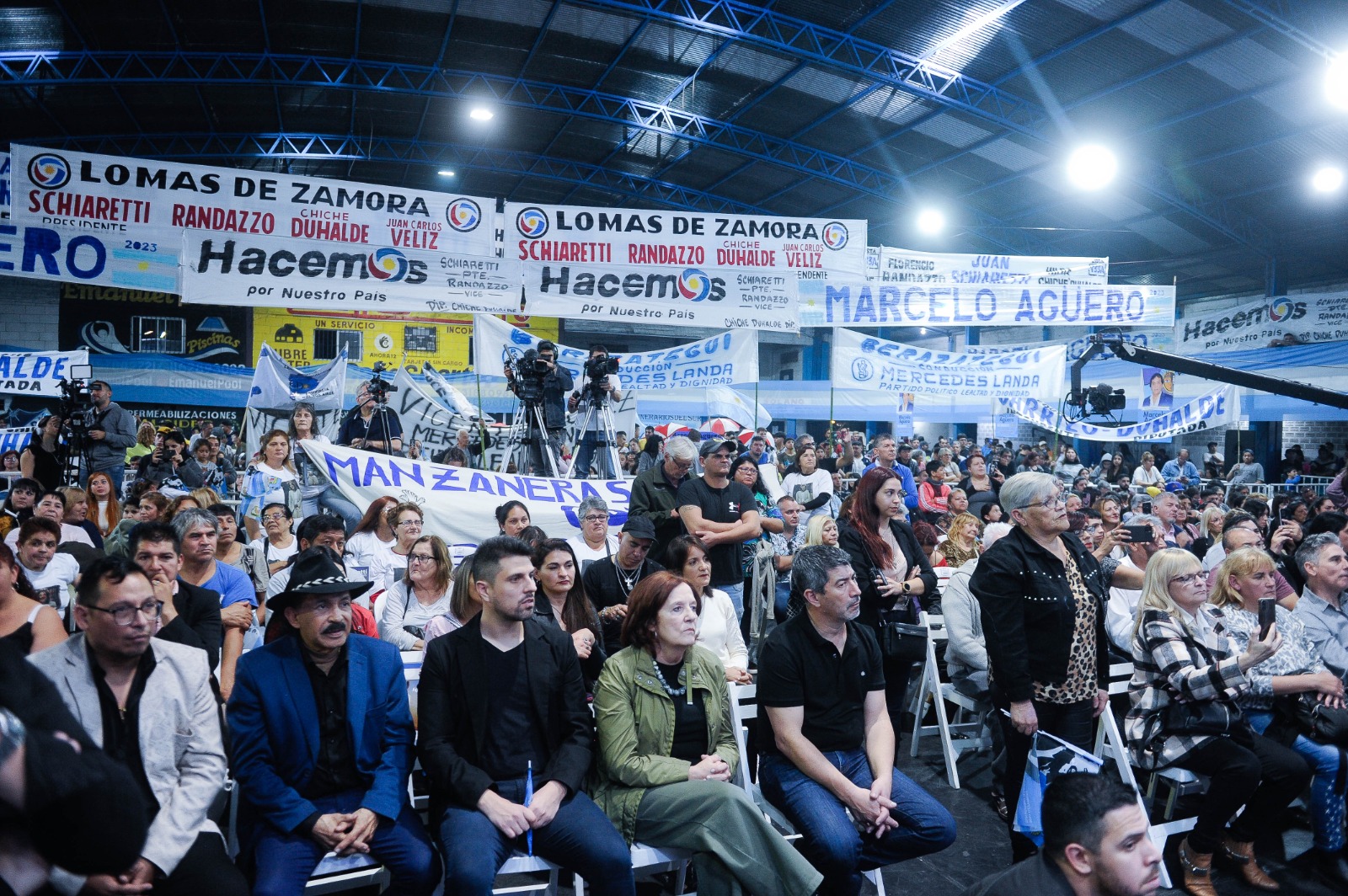 Schiaretti estuvo acompañado por Hilda “Chiche” Duhalde, primera candidata a diputada nacional en la provincia de Buenos Aires, por Hacemos por Nuestro País, y Alejandro “Topo” Rodríguez, segundo candidato de la misma boleta; y el anfitrión Marcelo Agüero candidato a intendente del espacio en Quilmes.