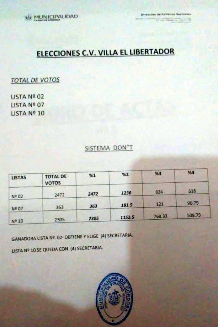 Al cierre de la elección, con las urnas aún calientes por el ajustado triunfo se informó un resultado provisorio con una diferencia de 70 votos a favor de la Lista 2.