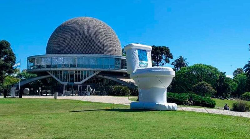 (Agencia Télam) Quienes transiten el cruce de las Avenidas Sarmiento y Belisario Roldán, en Palermo, durante este jueves se asombrarán de ver un inodoro gigante instalado delante del Planetario de la Ciudad de Buenos Aires. La iniciativa busca llamar la atención de los porteños y adherir al Día del Inodoro, que instituyó Naciones Unidas para crear conciencia sobre la necesidad de que todas las personas tengan un espacio para hacer sus necesidades e higienizarse en condiciones.