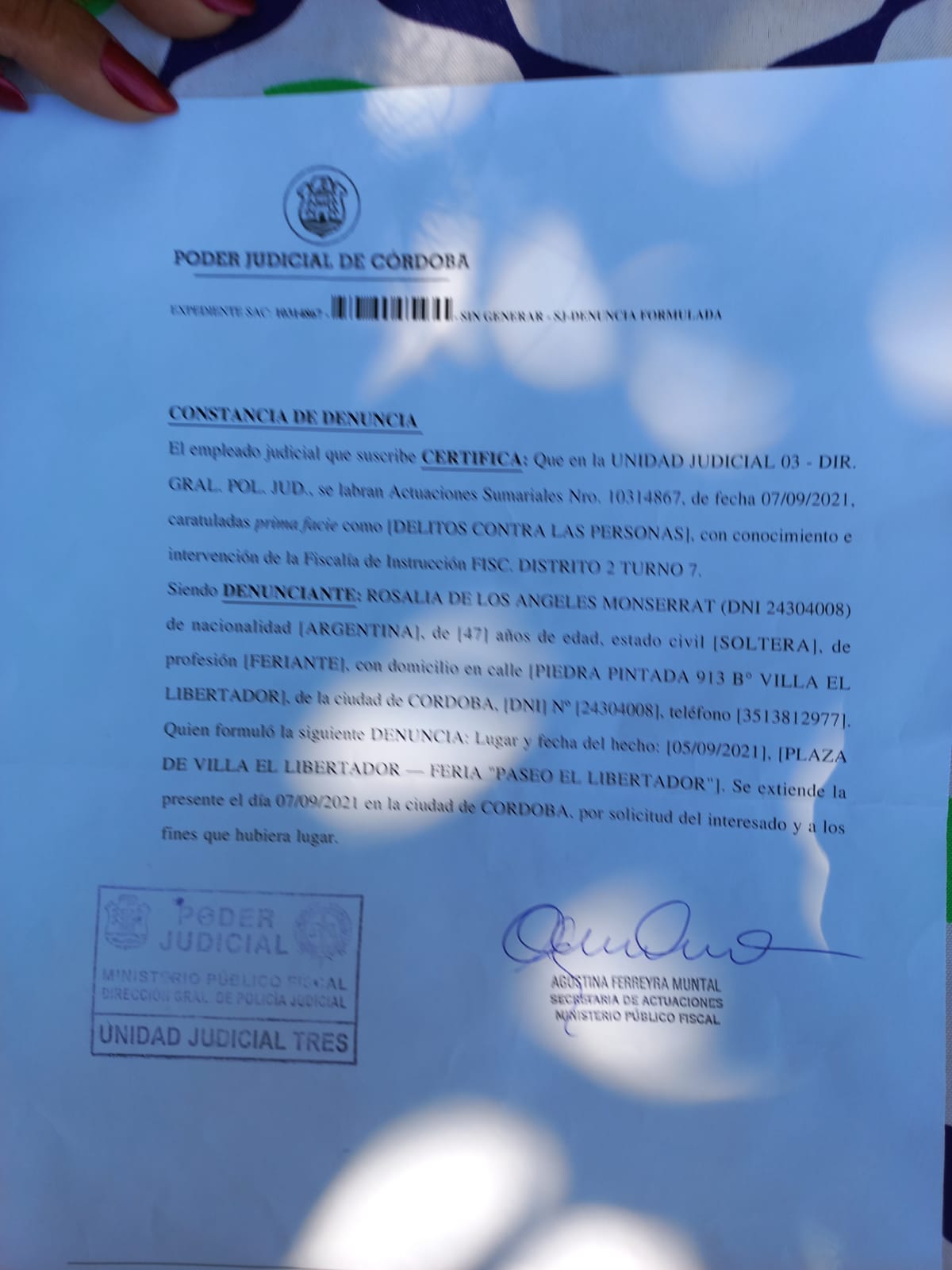 Angeles Monserrat, con más de diez años de venta en la plaza, llevó el desacuerdo a la justicia al denunciar delito contra las personas en la Unidad Judicial 3. La denuncia quedó asentada en el sumario 10314867, fechada el 7 de setiembre pasado.