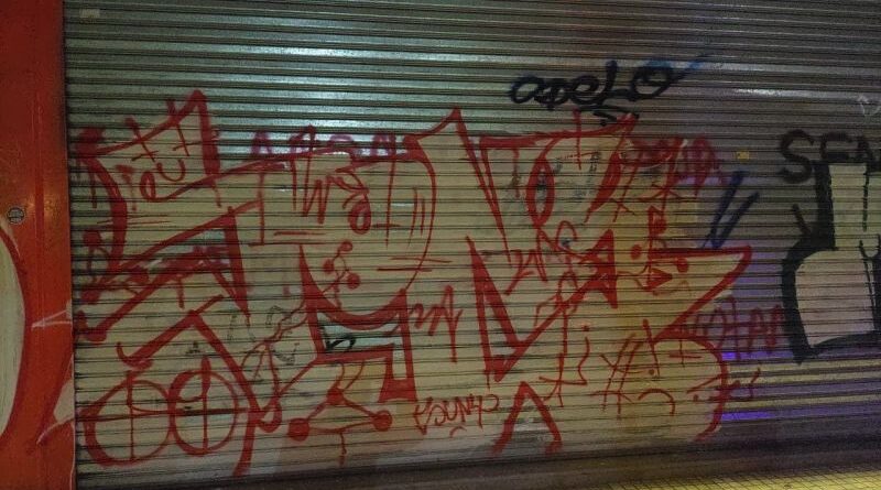 Durante la madrugada de hoy, en calle 27 de Abril 223 de B° Centro, fueron aprehendidos dos hombres de 22 años y una mujer de 23, luego de haber sido sorprendidos realizando pintadas en las persianas metálicas de un comercio de la zona.