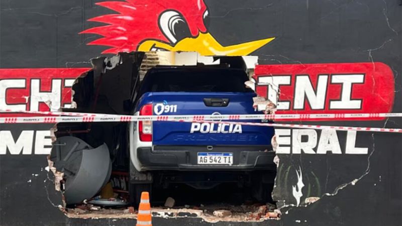 Un patrullero se incrustó esta tarde en un taller mecánico en barrio Matienzo en el marco de un siniestro vial.