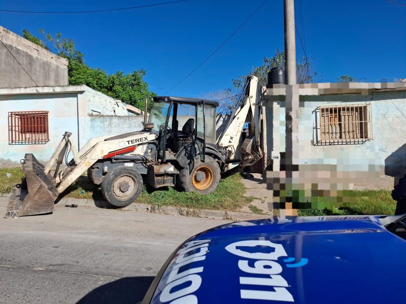 Momentos antes, una máquina retroexcavadora que trabajaba en el sector, se desplazó marcha atrás luego de que el conductor descendiera, colisionado con la puerta de un domicilio.