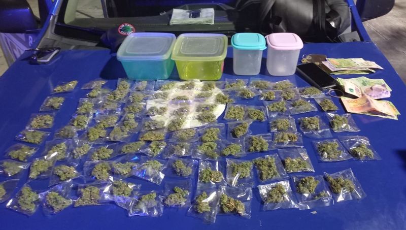 En el procedimiento se secuestró una bicicleta en la que circulaba y una mochila que contenía varias dosis de picadura de marihuana, una suma de dinero y un teléfono celular.