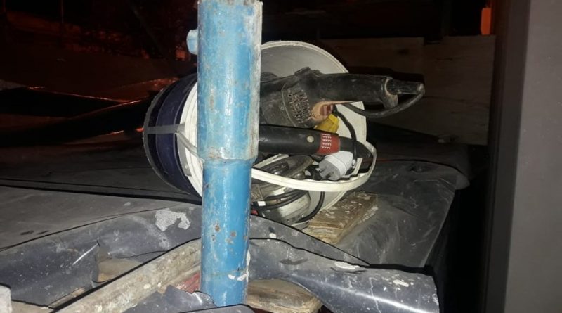 En la foto del patrullero llevándose al sujeto, del predio de la obra de Bancor y de las herramientas que iban a ser sustraídas.
