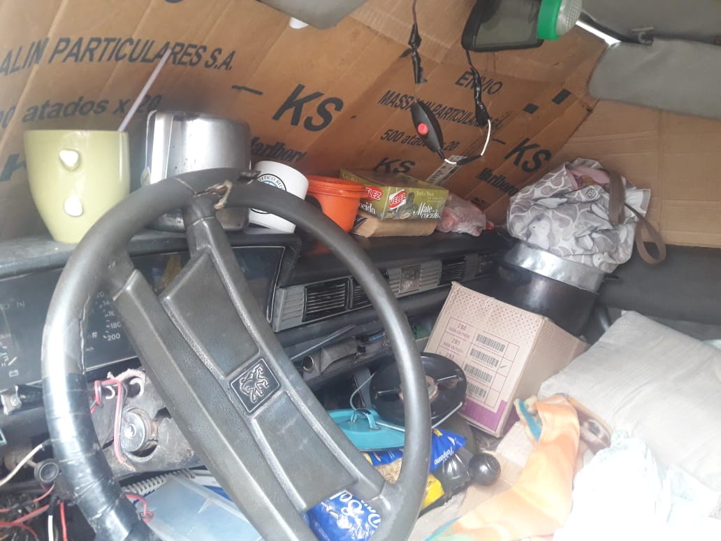 El interior del coche huele a humedad y encierro, y está colapsado de cosas: ropa, frazadas, alimentos, utensilios y calentador a gas con el que preparan el té o fritan las milanesas. Lo ubican entre los asientos, según contaron.